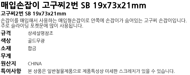 ¸ÅÀÔ¼ÕÀâÀÌ °í±¸Âî2¹ø SB 19x73x21mm