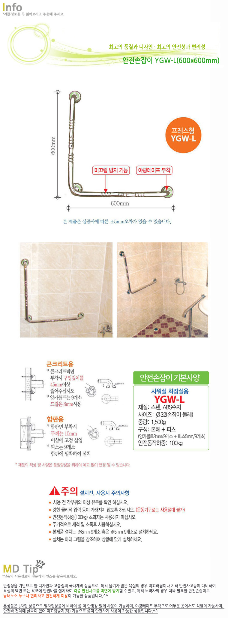 ǰ ¸í : ¾ÈÀü¼ÕÀâÀÌ/LÀÚÇü YGW-L(600x600mm)¾ß±¤