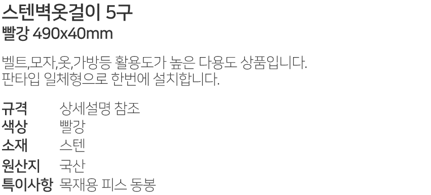 ½ºÅÙº®¿Ê°ÉÀÌ 5±¸ »¡° 490x40mm