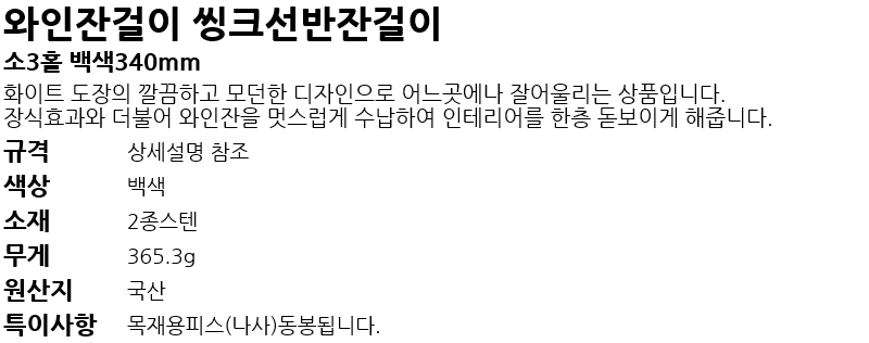 ¿ÍÀÎÀܰÉÀÌ ¾ÅÅ©¼±¹ÝÀܰÉÀÌ ¼Ò3Ȧ ¹é»ö340mm
