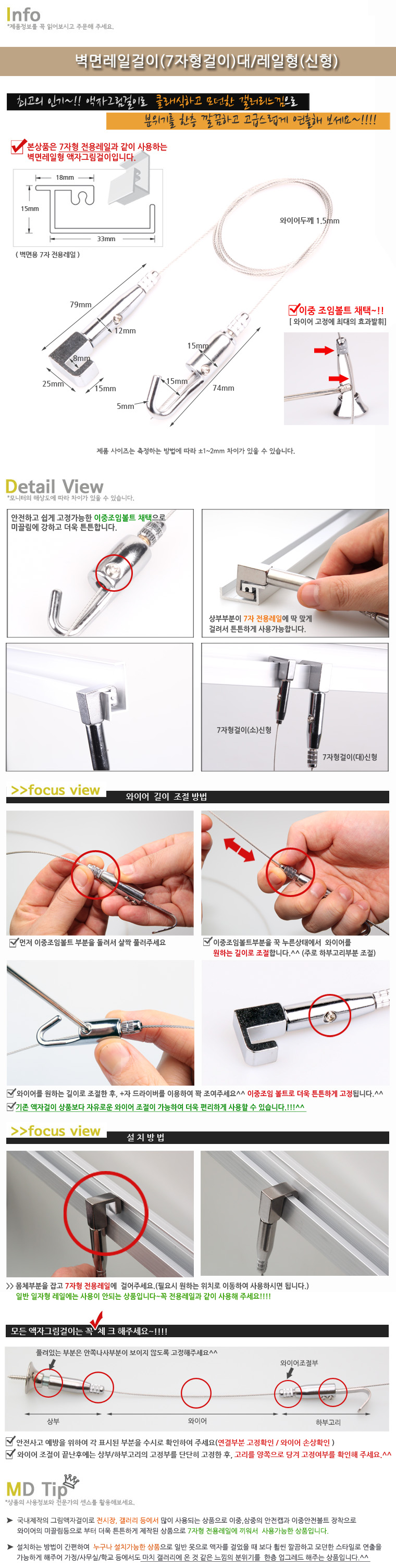 ¿ë µµ : º®¸é·¹ÀÏ (7ÀÚÇü Àü¿ë·¹ÀÏ)¿¡ °íÁ¤ÇÏ¿© ¾×ÀÚ,¼Òǰ,±×¸² µîÀ» °É¾î¼ »ç¿ëÇÏ´Â »óǰÀ¸·Î ¿øÇÏ´Â À§Ä¡·Î