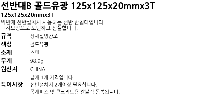 ¼±¹Ý´ëB °ñµåÀ¯±¤ 125x125x20mmx3T