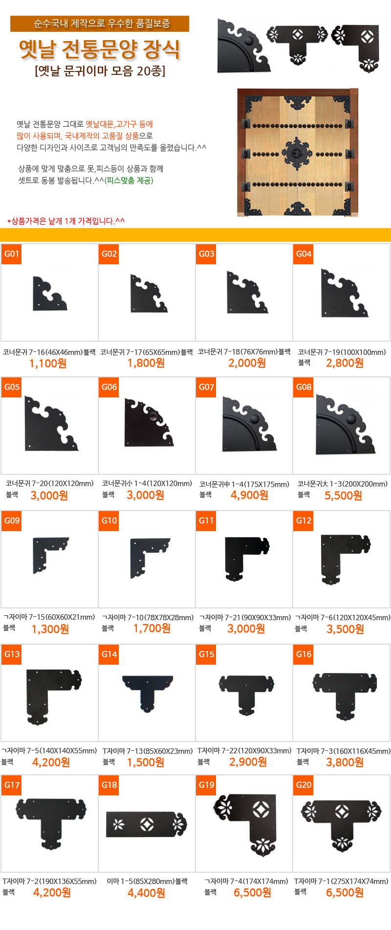 ¿¾³¯Àå½Ä/¿¾³¯¹®±Í,À̸¶ 20Á¾(¸ÂÃãÇǽºÁ¦°ø)/°íǰÁú ±¹³»Á¦ÀÛ